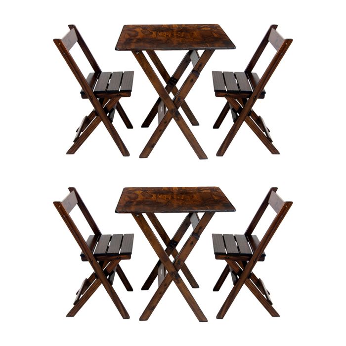 Kit 2 Conjuntos Mesa Dobrável para Bar e Restaurante 60x60cm com 2 Cadeiras em Madeira Maciça - Imbu