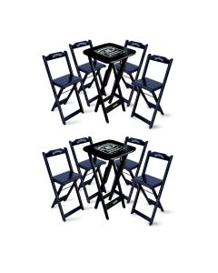 Kit 8 Jogos de Mesa Aparador Bar Dobrável com 2 Cadeiras em Madeira Maciça - PretoR$ 2.777,00ou 12x de R$ 231,42 , (total R$ 2.777,00) -